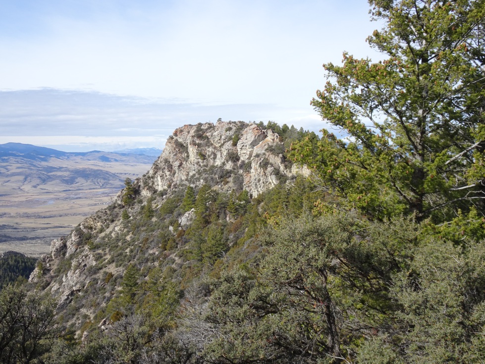 Doherty Mountain is a good early season summit. The hike is not difficult, but it does involve a bit of moderate bushwacking, as well as some up/down on the ridge traverse. It combines nicely with W7M/HB-120. To get there from Boulder: Drive 24.0 miles south on Hwy-69 (the Boulder-Cardwell Highway), then 4.2 miles SE on the Boulder-Cutoff dirt road. A well-defined 2-track heads west. It is not permissible to drive motorized vehicles on this 2-track, so park in the grassed pull-out. Follow this 2-track for 0.78 miles and keep your eyes open for the distinct (but fainter) road that dives across the gully to the North. Take this turn – it will keep you on public lands. Follow this 2-track North & then West 1.07 miles until there is an opportunity to follow another distinct, yet faint path back across the gully to the south where it rejoins the road that you began on. This will be just upstream from a small stock reservoir. The purpose of this “jog” off the initial road is to avoid some unmarked private land.