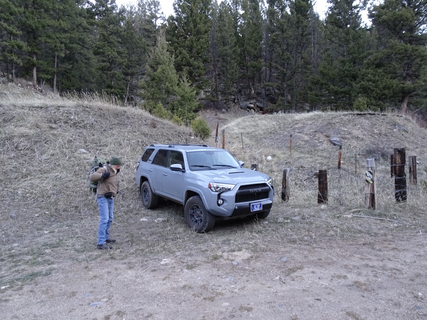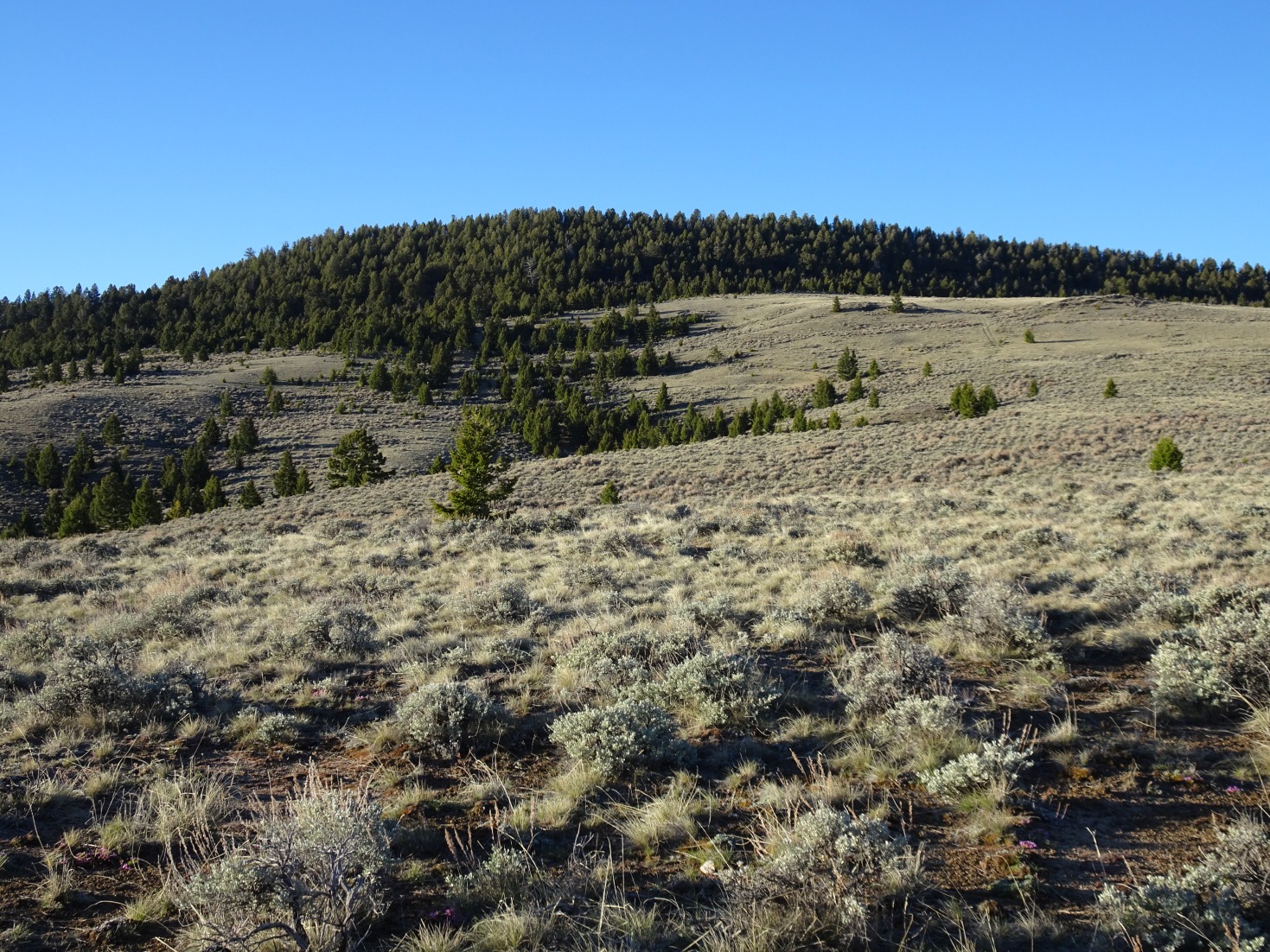 From the parking area, walk about 100-yards up (east) the gravel road and then follow the obvious path that heads up (north) the drainage between W7M/BR-155 & W7M/BR-150. Follow the path up the drainage & then turn left (west) off-trail and head towards the summit. There is a broad valley that you can either cross directly, or contour around. You will cross the Spring Creek “road”. This road shows up on Google Maps, but I don’t know whether it is accessible for motorized use. I am pretty sure there is no access from the Moose Creek end, but it may be worthwhile to investigate whether there is access at the northwest end of the road where it passes under the Interstate.