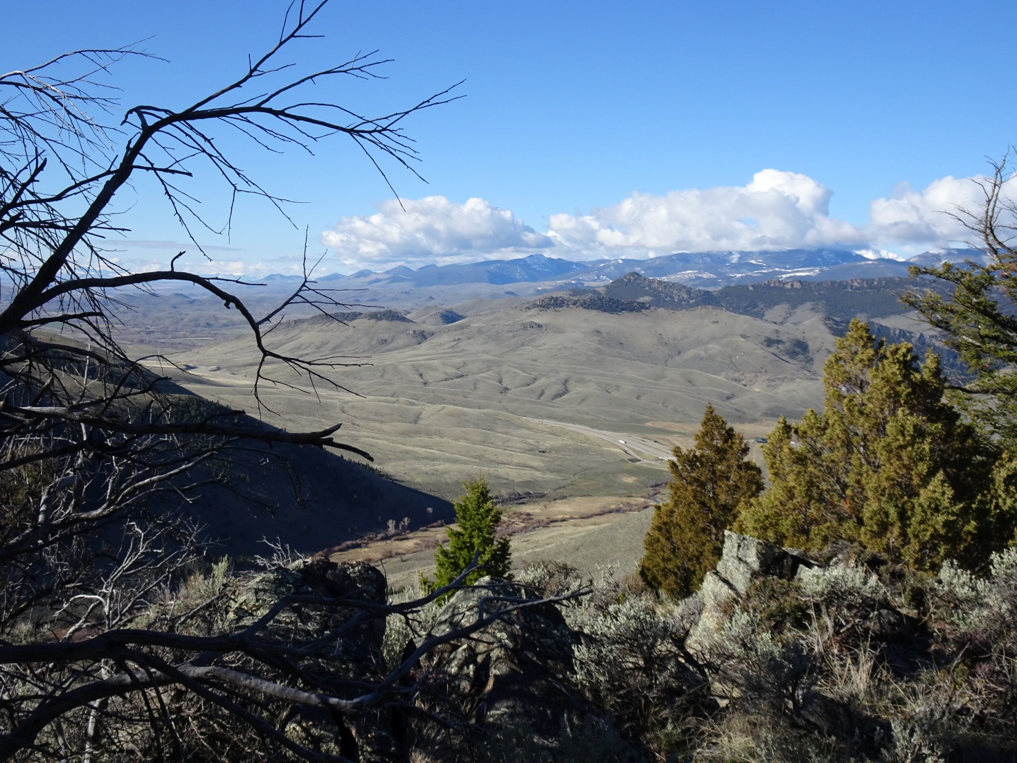 From I-15: Take Exit-99 (Moose Creek) & head east up the Moose Creek Road towards the Humbug Spires Wilderness Study Area. Drive 2.9 miles up the Moose Creek Road (gravel) & park on the left side of the road near the fenced culvert that conveys flow for the drainage to the north under the road. It is likely best to climb directly up this drainage. I will describe the route that I took, which is a bit more circuitous, but still quite nice.