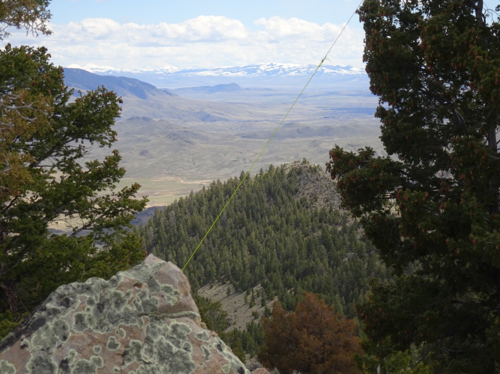 From I-15: Take Exit-93 (Melrose) & head west up the Trapper Creek Road. Drive 3.4 miles & turn right on the 2-track. Follow the 2-track north past the impromptu shooting range & continue north about 0.9 miles to a fork. Continuing straight (left) heads towards the southern side of the summit (I didn’t check this out) & looks like a reasonable approach. I turned right & continued on. The road will cross a small irrigation ditch 2 or 3 times. Head up Dry Hollow Gulch (NNW-ish), generally taking left-turns whenever the road forks. The road will curve to the left (west) & go over a low pass. W7M/BE-192 is on the left (south). Look for the 2-track that heads partway up the north slope & park where it “T’s” off the main road. This secondary 2-track is closed to motorized use. The climb is straight-forward with no complications. There are nice views of the surrounding country.