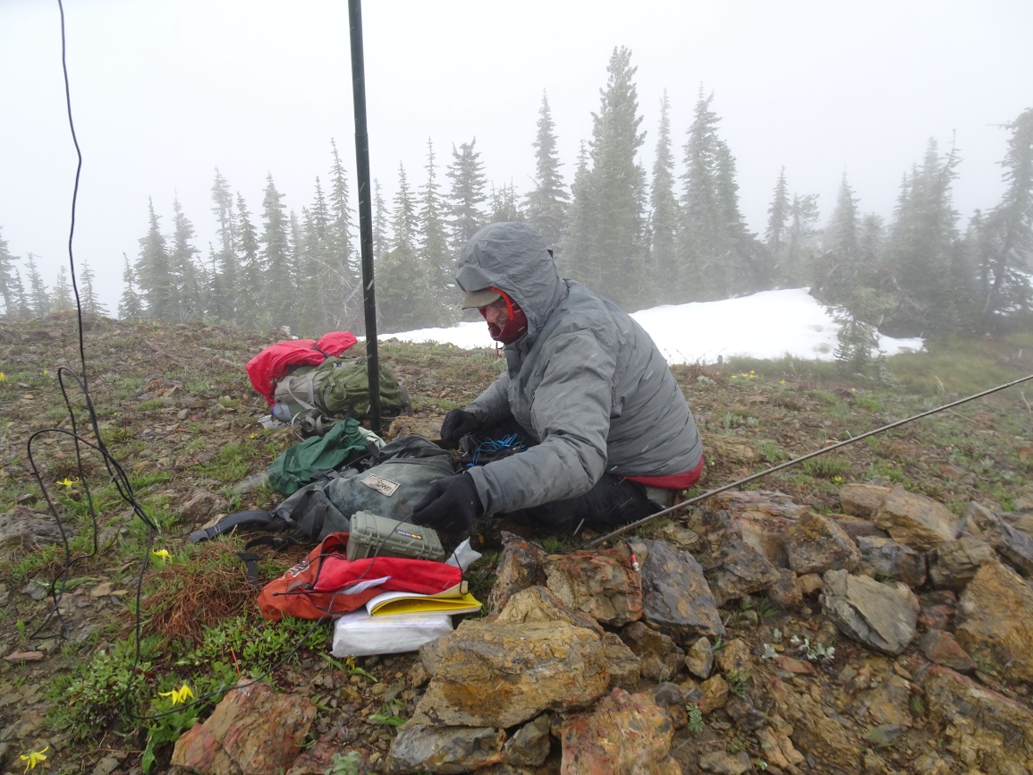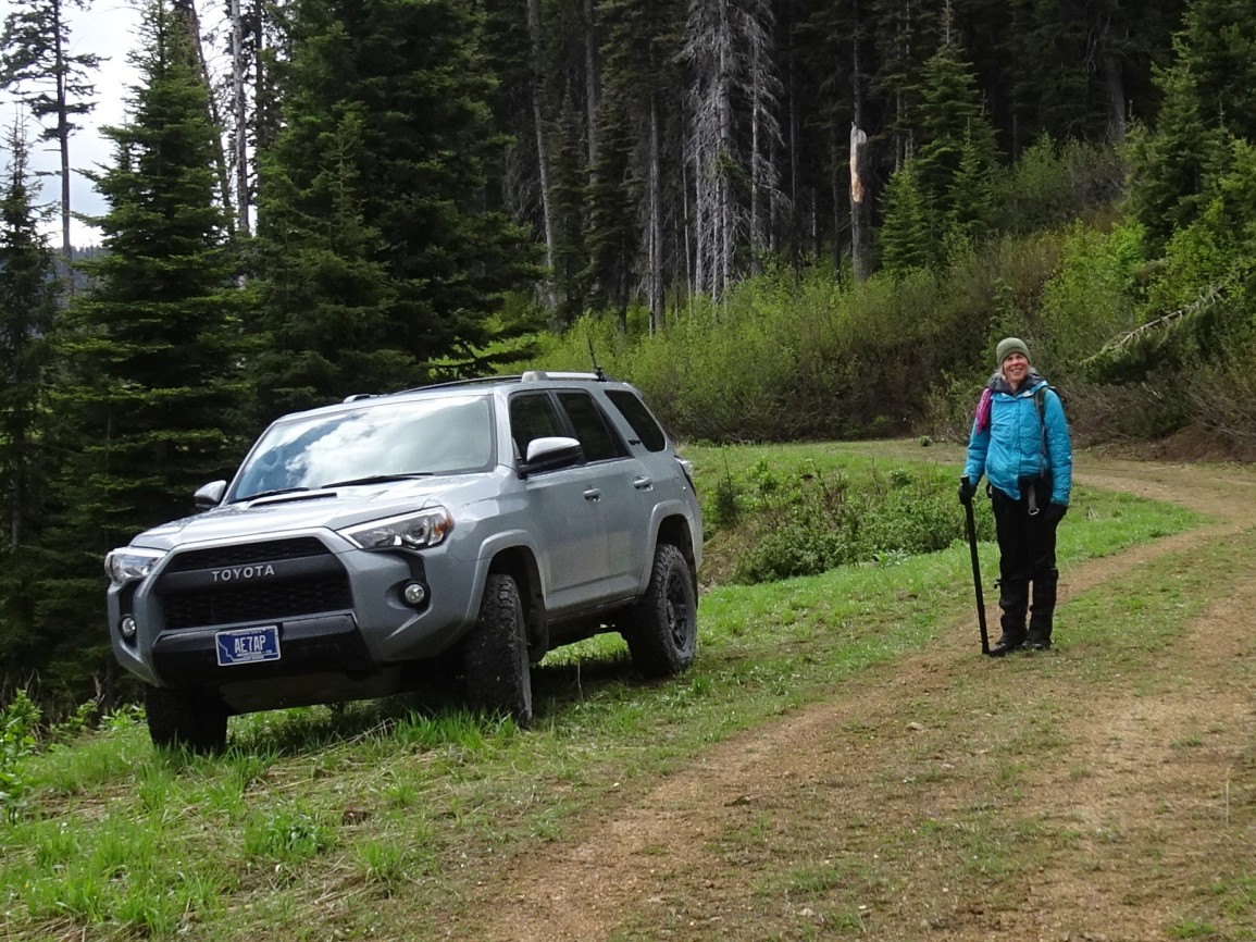 From the summit of Huckleberry Pass, continue 0.5 to 0.6 miles down the east side. Take the forest road that angles to the right (southeast) and follow it 0.7 miles to the turn-around that is bulldozed into the hill. It would be prudent to take a chain saw for this 2nd road, as it is not very heavily traveled. I parked in a wide spot in the road just before here. I hiked further along the road for about 0.5 miles, before cutting straight up the ridge. The hill is steep at first with lots of deadfall, but the going is easier than one would think it should be. There are lots of game trails through the forest that eventually lead to a clearing, up to a false summit, then finally to the true summit.