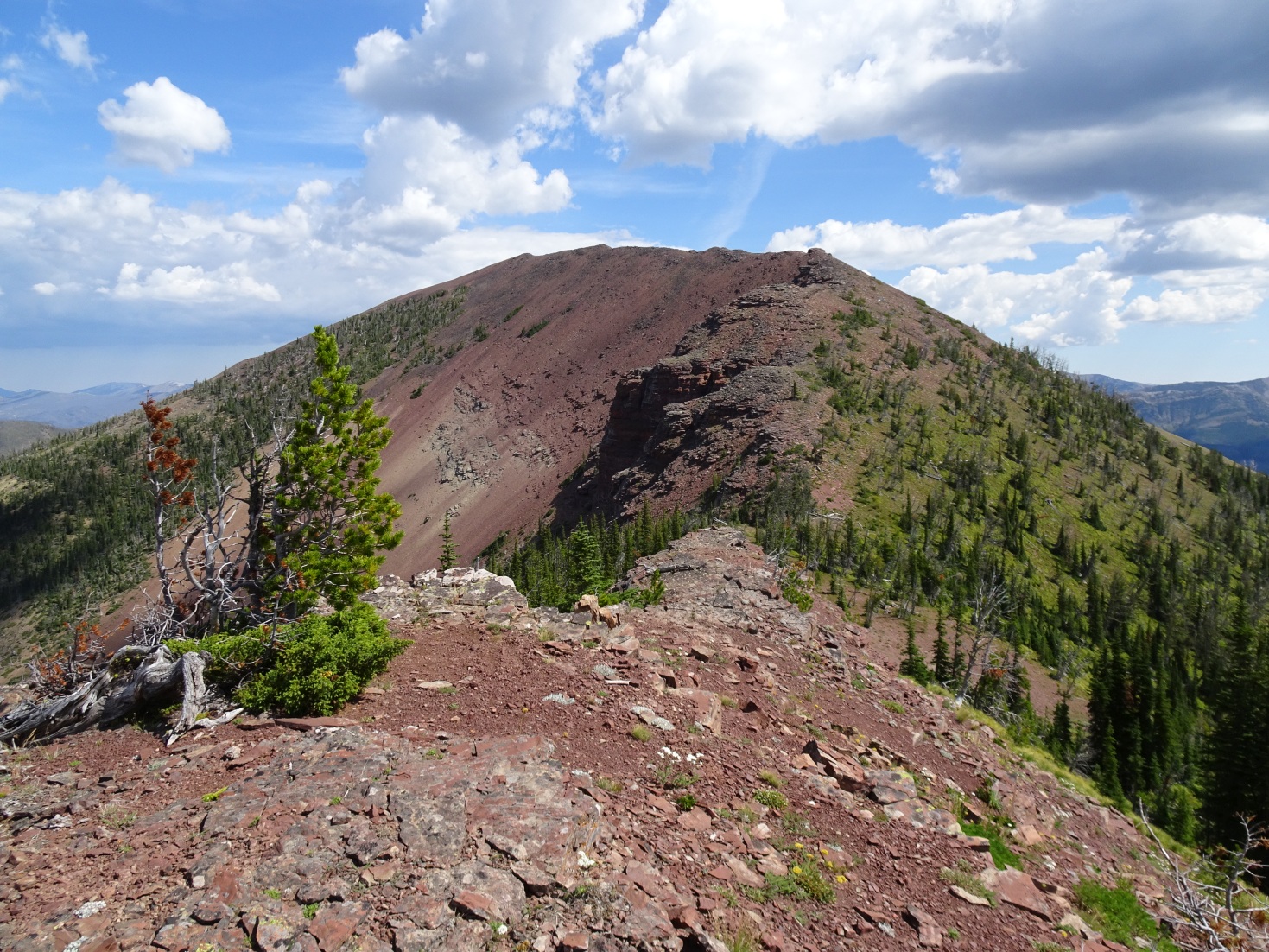 Signal Mountain is a red promontory that rises to the east of the North Wall and overlooks the North Fork of the Sun Valley in the Bob Marshall Wilderness. Hike from the Silvertip TH to the Pentagon Guard Station then up Switchback Pass and down to Lake Levale. There is good camping at Pentagon and at Lake Levale. From Lake Levale, ascend the main trail south until it crests out. At the crest, ascend to the east and work around the either the north or south side of the false summit. Continue following the ridge to the summit of Signal Mountain. The hike includes great views of the North Fork of the Sun Valley, as well as the North Wall and the Trilobite Range. The summit ridge includes outcrops of bright red rocks with ripple marks. Signal Mountain is the northernmost summit in the CL SOTA region.